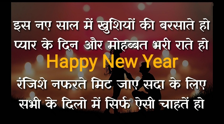 इस नए साल में खुशियों की बरसात हो, प्यार के दिन और मोहब्बत भरी राते हो, रंजिशे नफरतें मिट जाए सदा के लिए, सभी के दिलों में सिर्फ ऐसी चाहते हो। !!Happy New Year!!