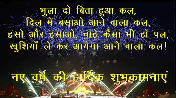 भुला दो बिता हुआ कल, दिल में बसाओं आने वाला कल, हंसो और हसाओं, चाहे कैसा भी हो पल, खुशियां लेकर आयेगा आने वाला कल।। !! Happy New Year!!