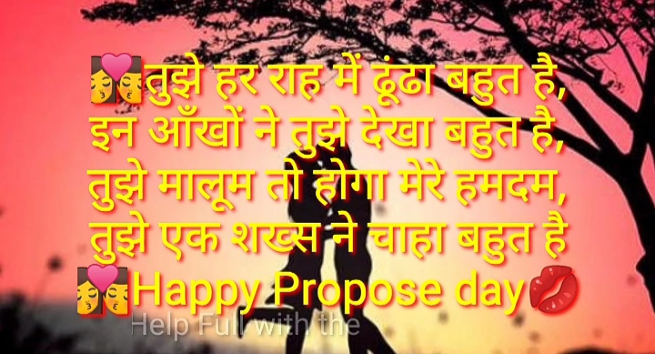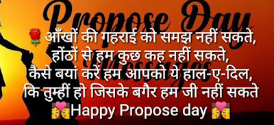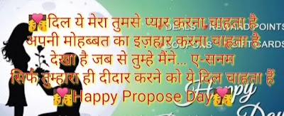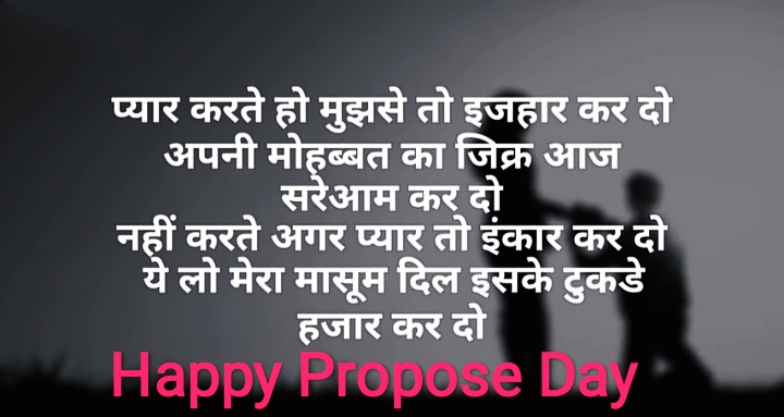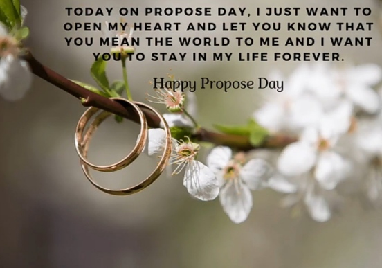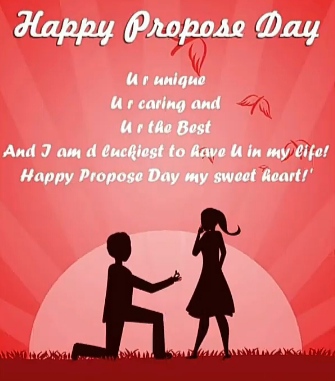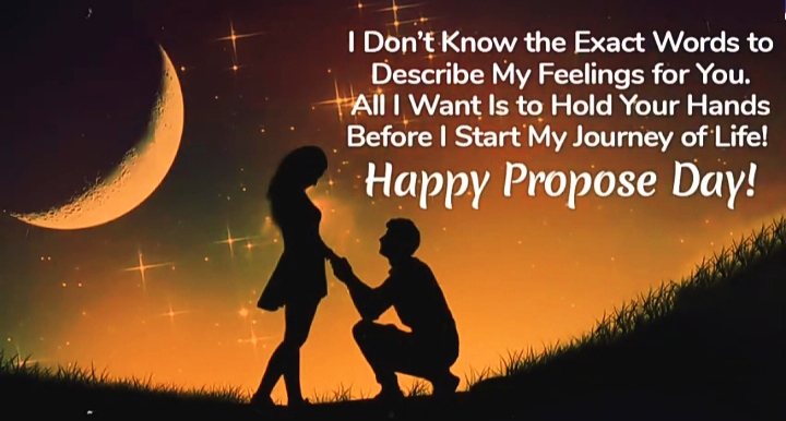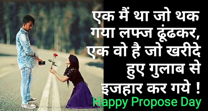 Propose Day का दिन हर व्यक्ति के लिए बहुत ही ख़ास दिन होता है इस दिन वह अपने पसन्दीदा व्यक्ति अपने लवर या अपने क्रश को purpose करके विश कर सकते है | यह दिन रोमांटिक वैलेंटाइन वीक के दूसरे दिन आता है । अक्सर लोग यही इंतज़ार करते है की कोई उन्हें प्रपोज़ डे के दिन प्रपोज़ करे। इसीलिए अगर आप किसी को पसंद करते है तो आप उस दिन उनसे अपने दिल की बात कह सकते है | इसीलिए हम आपको propose day के लिए कुछ बेहतरीन व्हाट्सएप्प स्टेटस लाए है जो की आपके लिए बहुत महत्वपूर्ण है | Propose Status For Girlfriend and Boyfriend। अगर आप नहीं जानते कि प्रपोज डे कब है ? तो हम आपको जानकारी देते है कि 7 days of valentine week में propose day 8th February को मनाया जाता है । प्रपोज़ डे के दिन हम आपके लिए Happy Propose Day Quotes, happy Propose Day Quotes Images layeअपने प्यार के साथ शेयर कर सकते हैं।